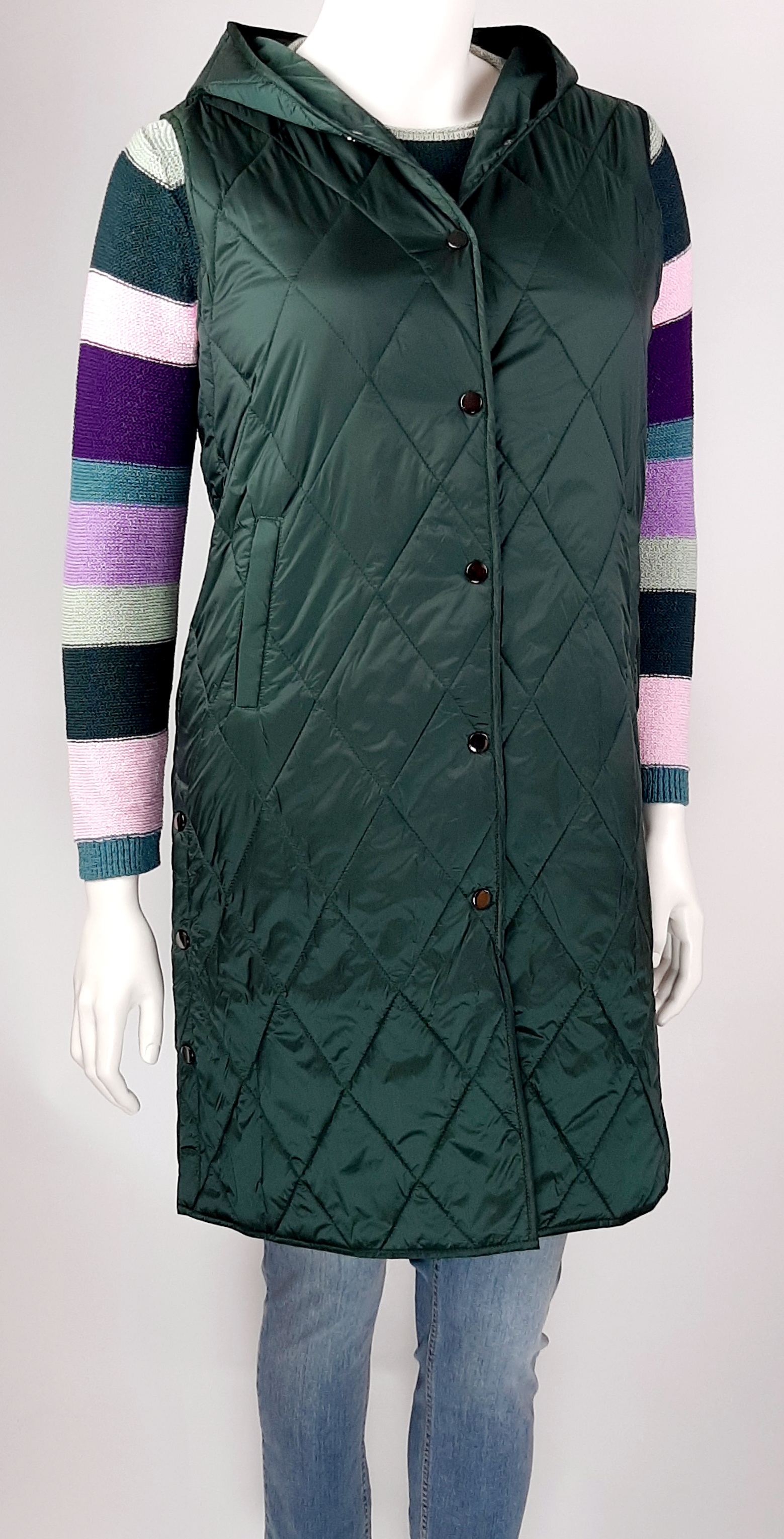 Ukaž svůj styl i v chladných dnech – s touto prošívanou vestou od VIA APPIA . Její jednoduchý design z ní dělá absolutní kombinační talent pro neobvyklé vzory, ať už na košilích nebo svetrech. Kapuce a zip se také osvědčují jako praktické detaily. Materiál:100% polyamid