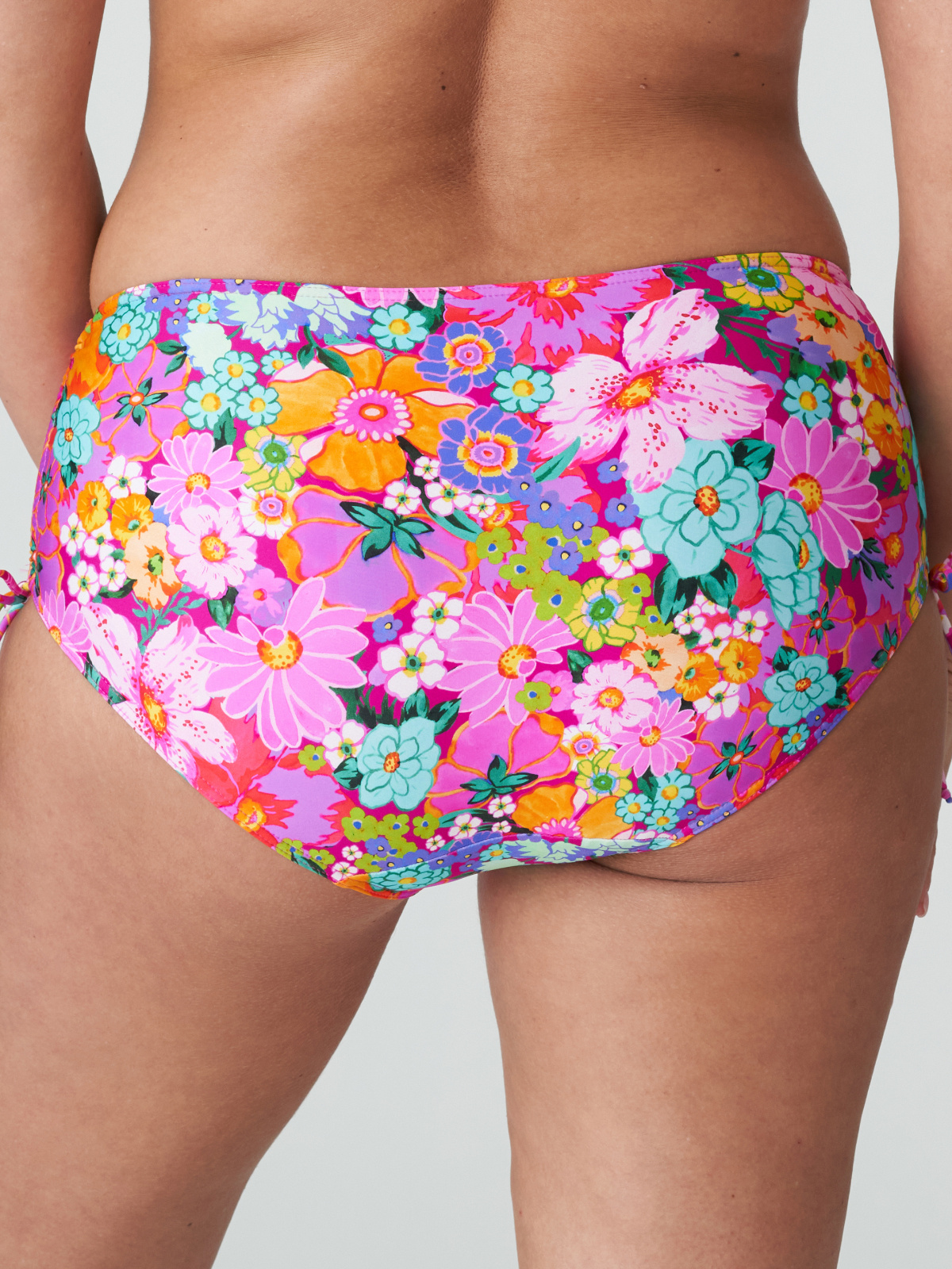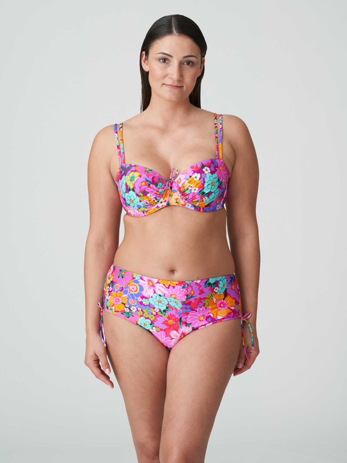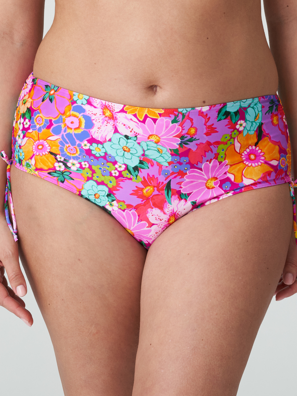 Kalhotky mají vyšší střih. Střih jemně formuje a zakrývá bříško. Elastické lemy se skvěle přizpůsobí vašim křivkám. Boční stahovací šňůrky umožní úpravu výšky boků. Zadní střih pěkně kryje zadeček. Materiál plavky: elastan 20% , polyamid 74% ,polyester 6%