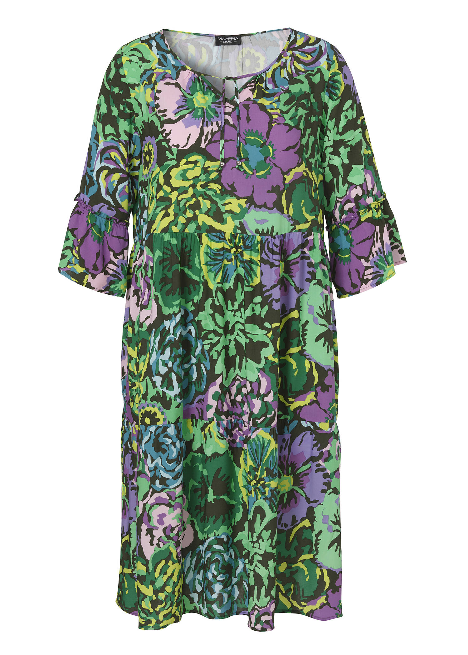 Stupňovité letní šaty z čisté, splývavé viskózy zaujmou nejen svým pěkným květinovým vzorem v harmonických trendy barvách. Díky vzdušnému designu slibuje maximální pohodlí i v horkých letních dnech.
