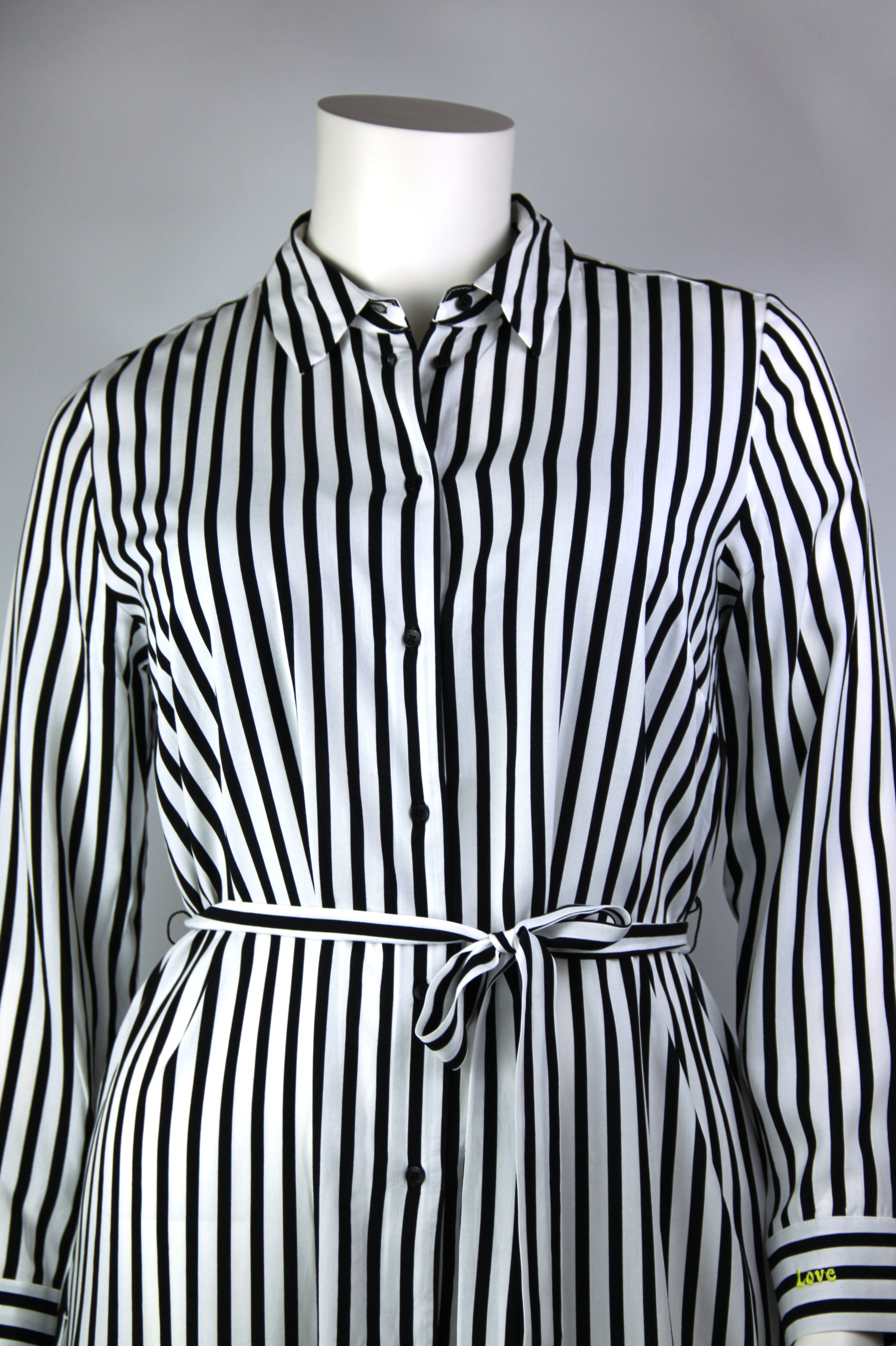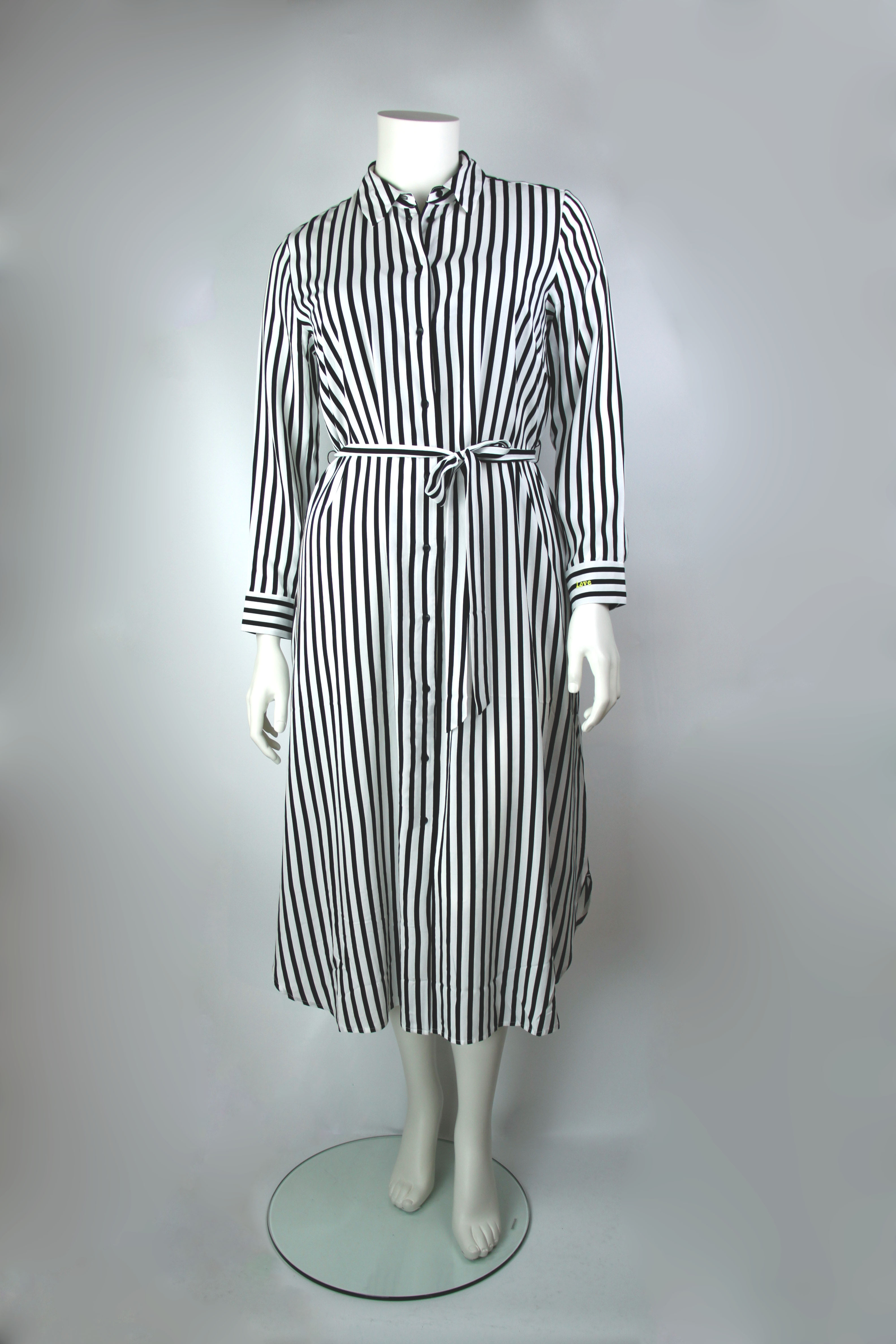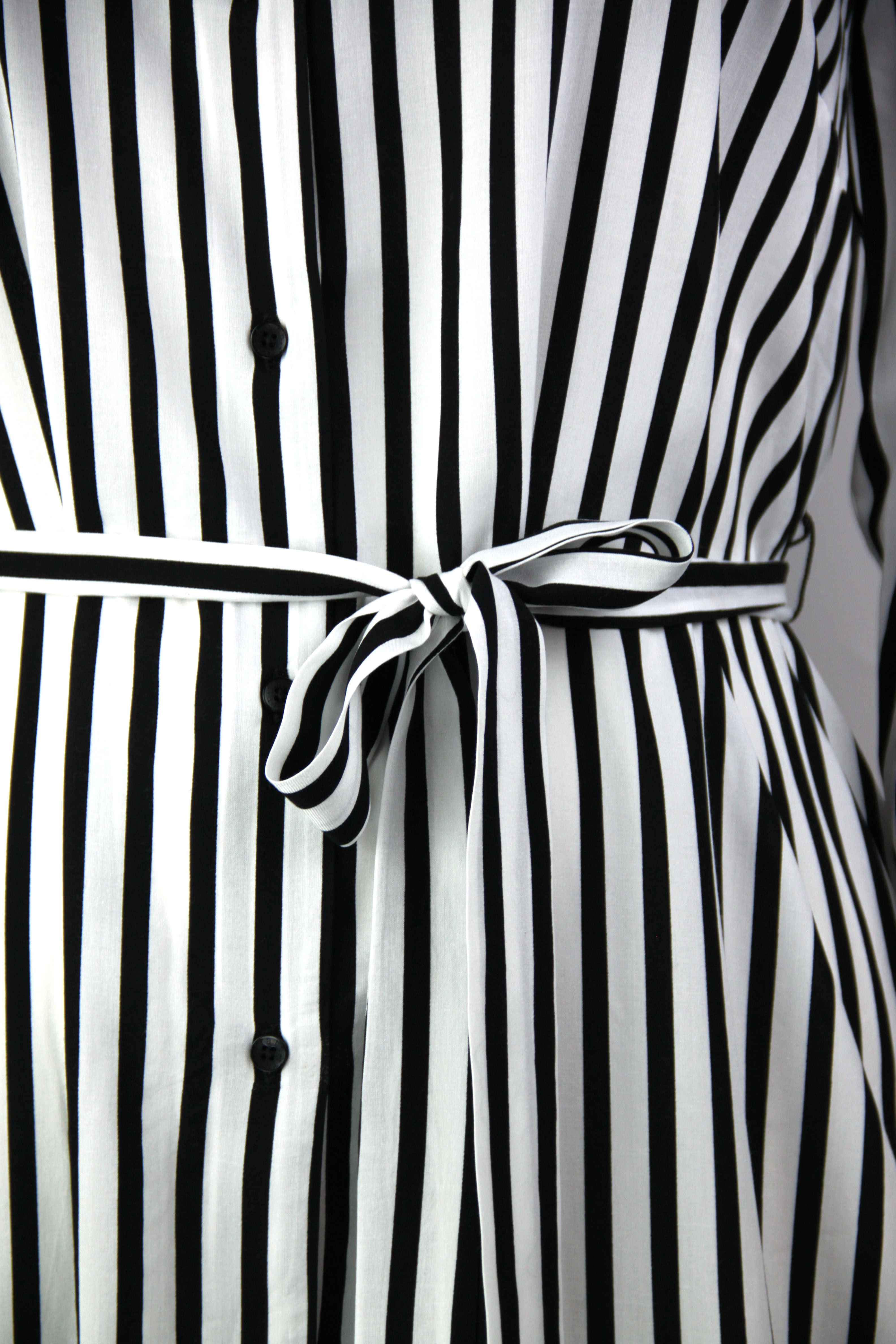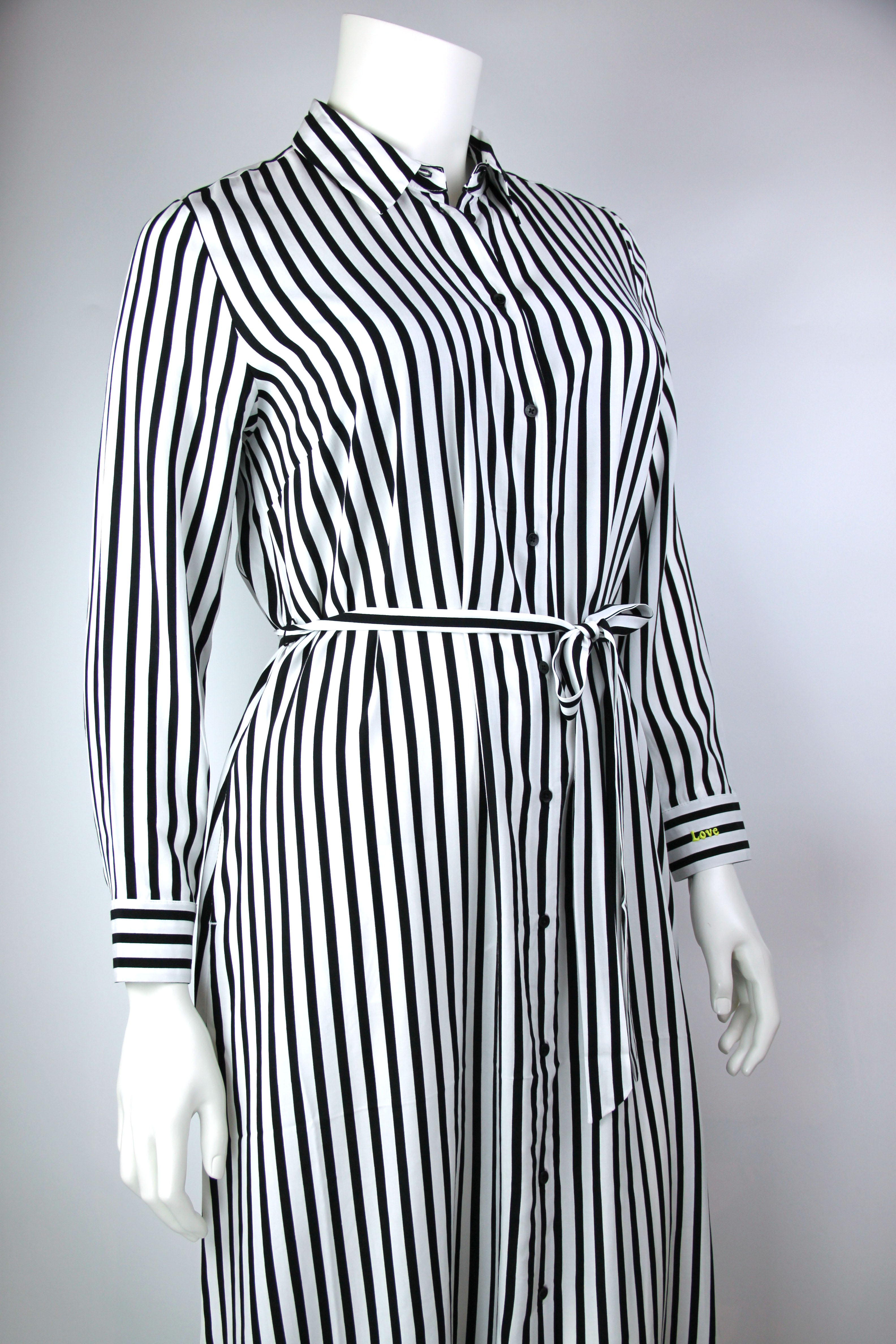 Nadčasové viskózové šaty s otevřeným volným střihem pro eleganci bez námahy. Vyrobeno z vysoce kvalitní viskózy, mají zapínací výstřih a klasický pruhovaný styl pro okouzlující vzhled. Materiál: 100% viskóza